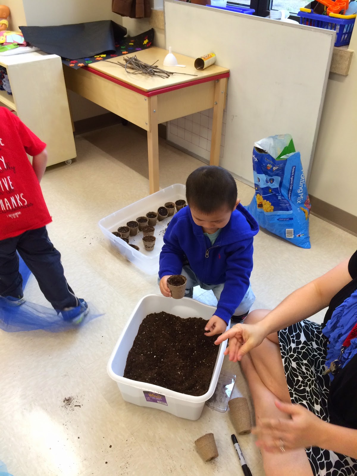 We also took some time after snack to plant radish and leeks. We got to see how different the seeds looked.